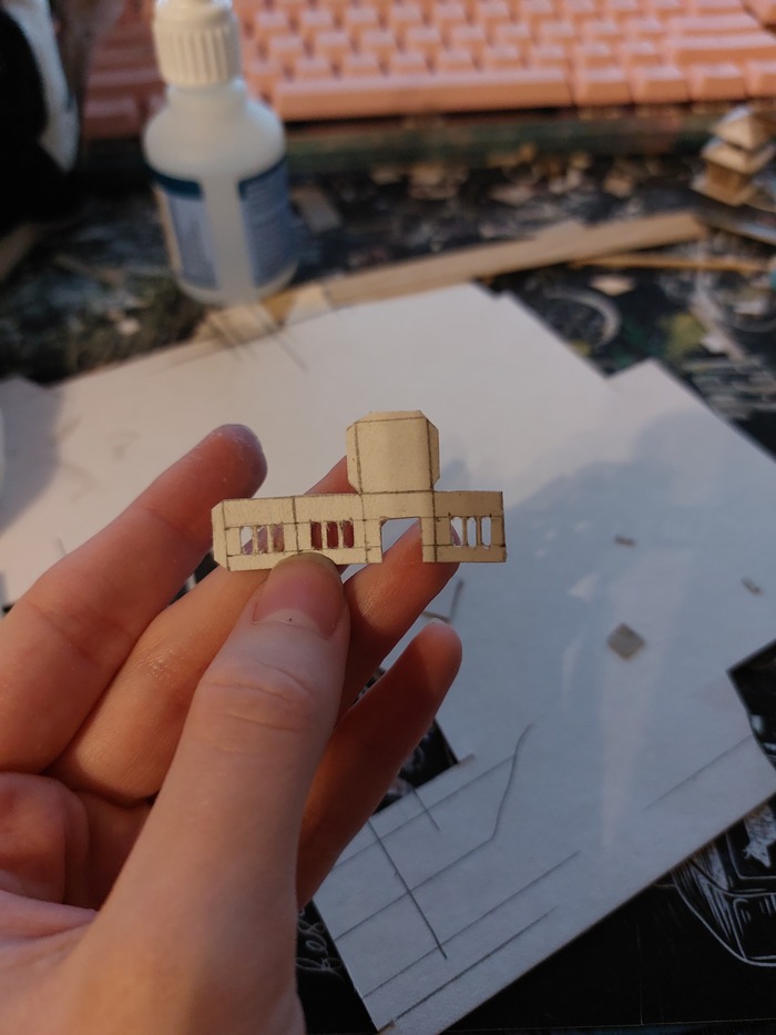 А после я добралась до самого долгого и муторного занятия: склеивания домиков. Таким я занималась первый раз в жизни. Из школы оставались остаточные знания, как делать развёртки геометрических фигур. Этими знаниями я и воспользовалась. Всего надо было сделать 9 домиков, я сделала 10, самый первый отбраковала. Домики маленькие, клеить их было непривычно, руки опять все были в супер клее, у меня ушло на них 3 или 4 моих выходных дня, могла сидеть с ними с утра и до вечера. Больше такой экспириенс я повторять не хочу.