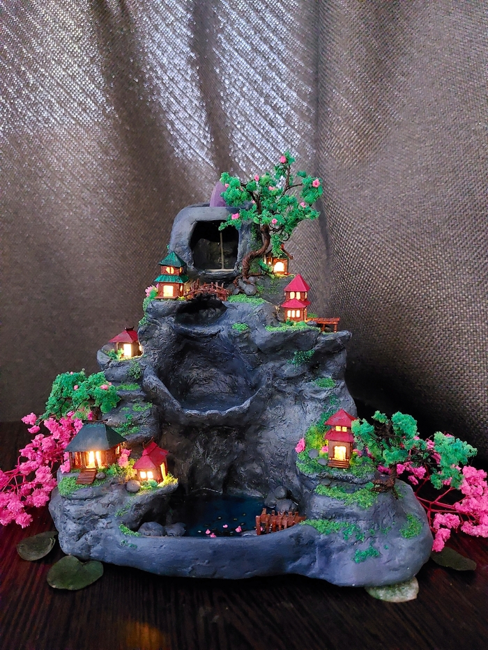 Поскольку я не была удовлетворена своей предыдущей попыткой создать подставку для благовоний в виде водопада (Дымопад), то я попробовала ещё раз и вот что из этого вышло: