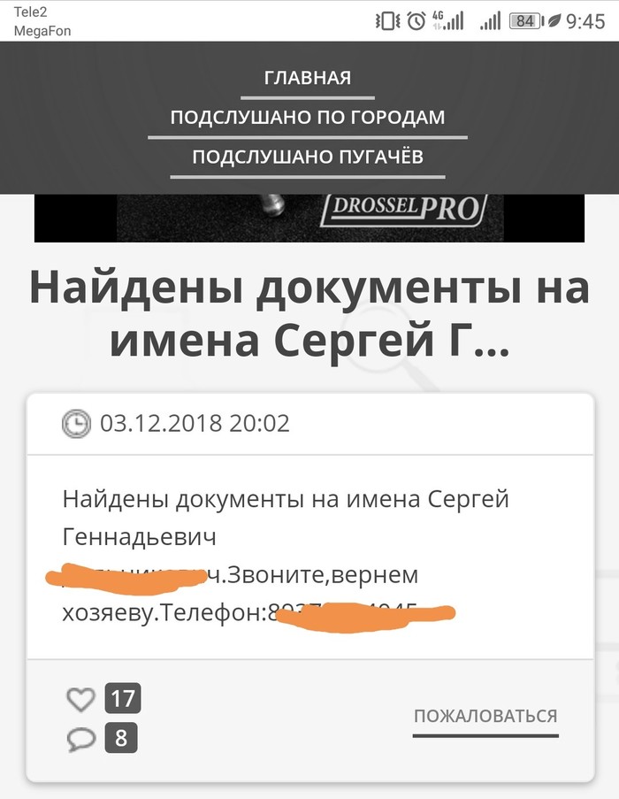 Хочу лишь поблагодарить этих честных и по своему изобретательных людей, которые смогли своими силами, без современных технологий и социальной инженери найти как со мной связаться.