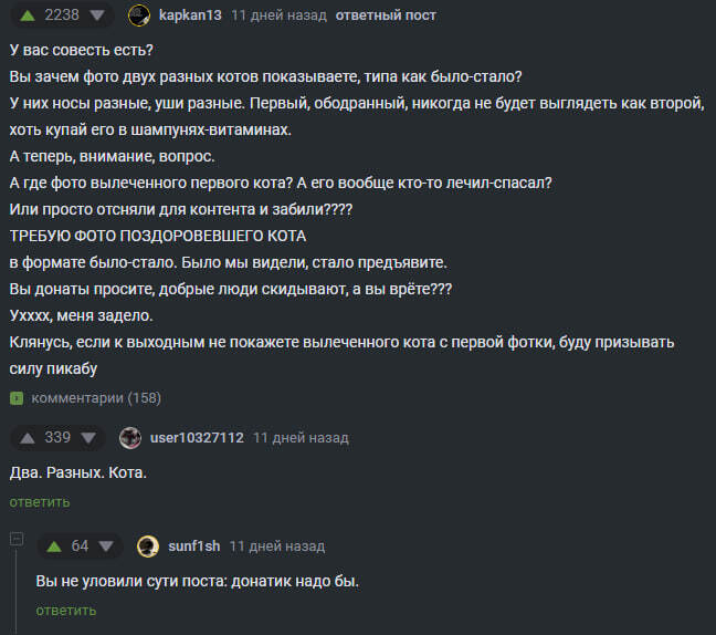 Кстати вспомнила громкий скандал с одним токсичным сбором, девушка попала в аварию, осталась в инвалидом. Её пиарил оксимирон, все ей собирали на помощь. В итоге в 22году она начала рассказывать, что государство отобрало протез типа в пользу какого-то СВОшника, всех, кто писал, что это так не работает, банила, рассказывала про диктаторскую Россию и тд, собирала на лечение в США и Корее, вся оппозиционная движуха ее пиарила, в итоге выяснилось, что она каждый раз пиздела, тратила деньги куда попало, всех, кто задавал вопросы банила. Орнула, что переехав в Корею она присосалась к какой-то доброй тете, которая ей организовала интервью на ббс, где Сэмми рассказывала, какая Россия плохая и не даёт ей помощи, а потом сама кинула эту кореянку. Поэтому к таким давящим на жалость собирателям у меня такое себе отношение, хотя я сама тратила всегда много на благотворительность, но стараюсь помогать очень адресно. Кстати, как в обсуждении токсичных сборов я забыла про недавний случай- та же Багира случай своей благодарностью без отчётов.
