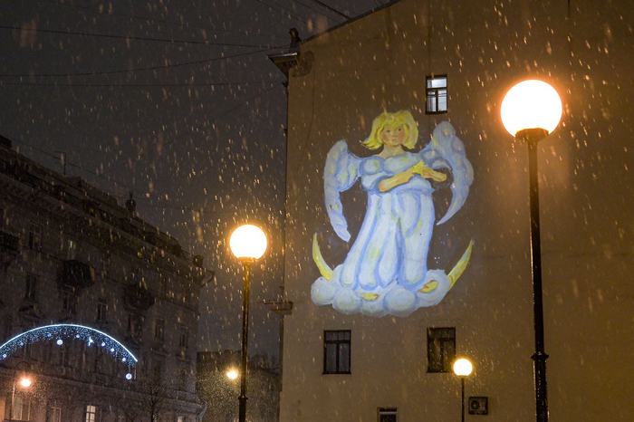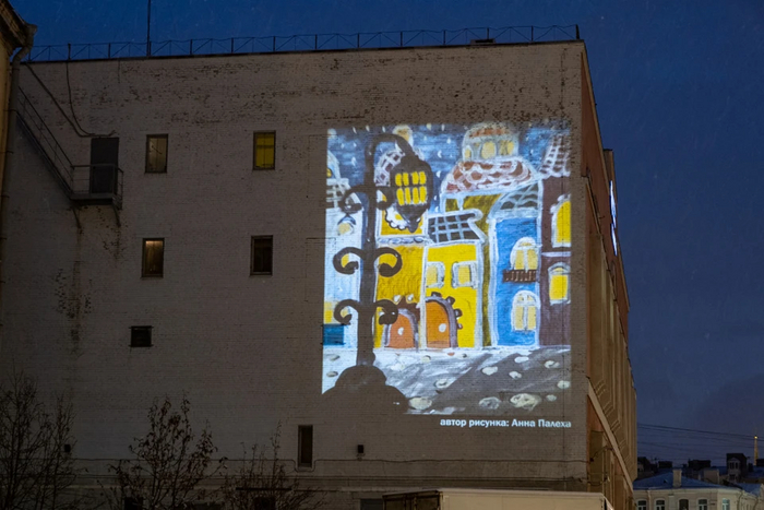 В прошлом году фасады зданий украшали новогодние проекции с детскими рисунками.