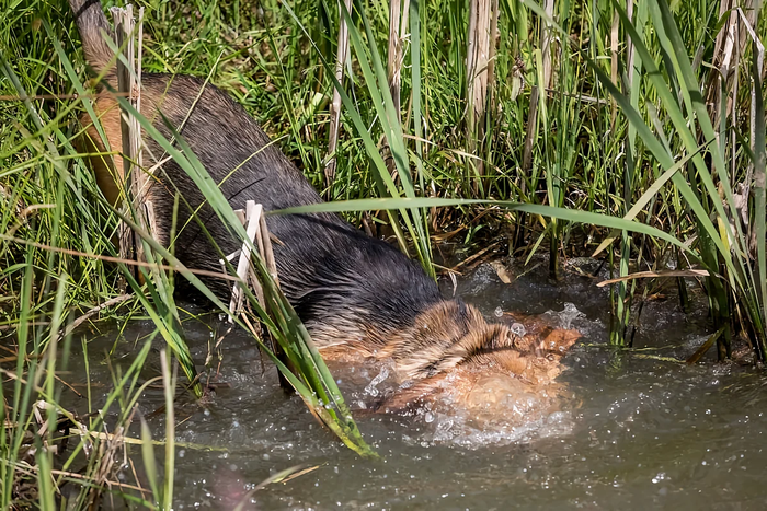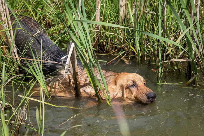 Если собака ненадолго исчезла в водоёме, рано поднимать панику. Все собаки с рождения великолепные пловцы, но бладхаунды ещё и ныряют прекрасно. А чему удивляться? Сколько на воде доступной дичи? Утки, селезни, гуси-лебеди. Основным предназначением породы выступает поиск, поэтому нырять наш герой обязательно будет. След на воде потерян, значит его нужно искать под водной гладью.