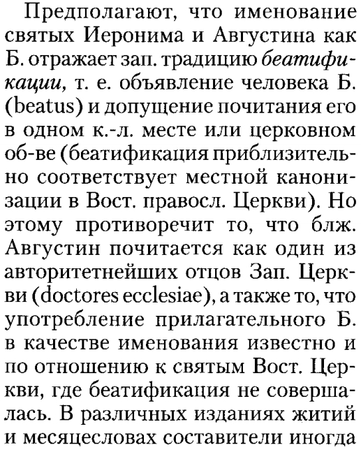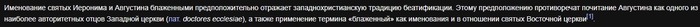 Тут так же говорится об уже известной проблеме Августина и ещё одного святого. И сообщается, что для хоть какого-то разрешения проблемы значения слова к именам святых иногда добавляют дополнительное пояснение. Читаем далее: