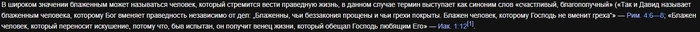 Теперь праведник. И тут какие-то цитатки из Библии. Одна очень интересная цитатка о прощении беззаконий и покрытии грехов. Об этой цитатке я ещё поговорю в будущем. Спойлер: таки можно иногда убивать и насиловать и тебе за это ничего не будет, более того тебя будут уважать. И ещё одно значение:
