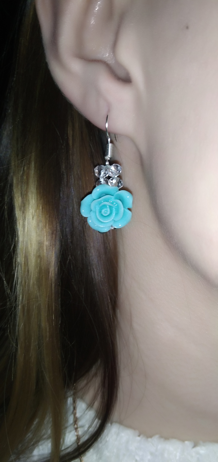 Сами розочки - покупные, сделаны из смолы, также, были использованы бусины из хрусталя или стекла (не могу знать наверняка), прозрачная резинка силиконовая и швензы для сережек.