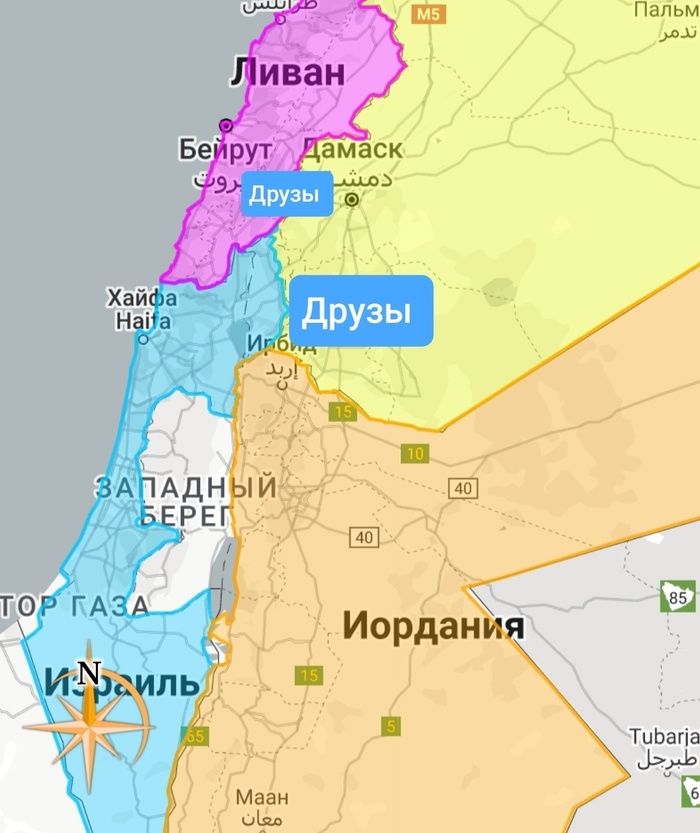 У них нет своего государства и никогда не было, поэтому они компактно жили на территории Османской Империи (Турции). Но после падения Порты, начали создаваться самостоятельные государства и друзы оказались разделены. Сегодня они проживают в Сирии, Ливане, Израиле и Иордании. Живут очень обособленно. На карте это выглядит вот так. Они расположились как бы на пересечении трёх государств.