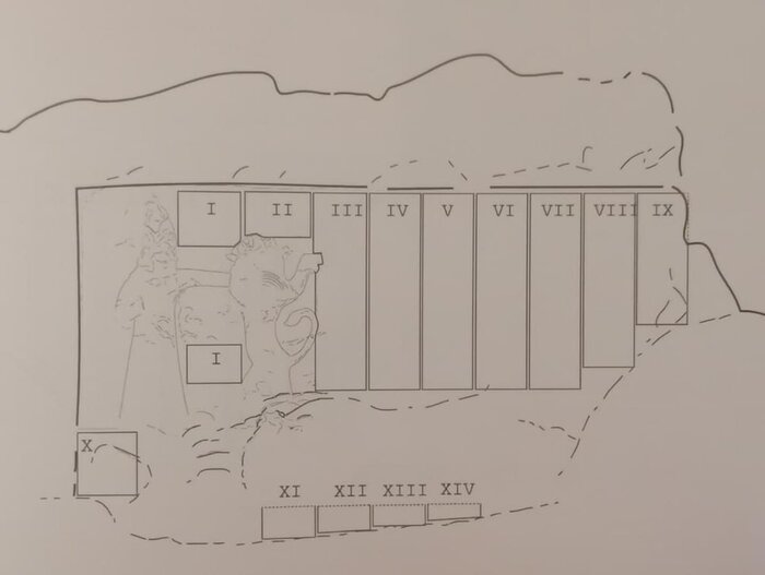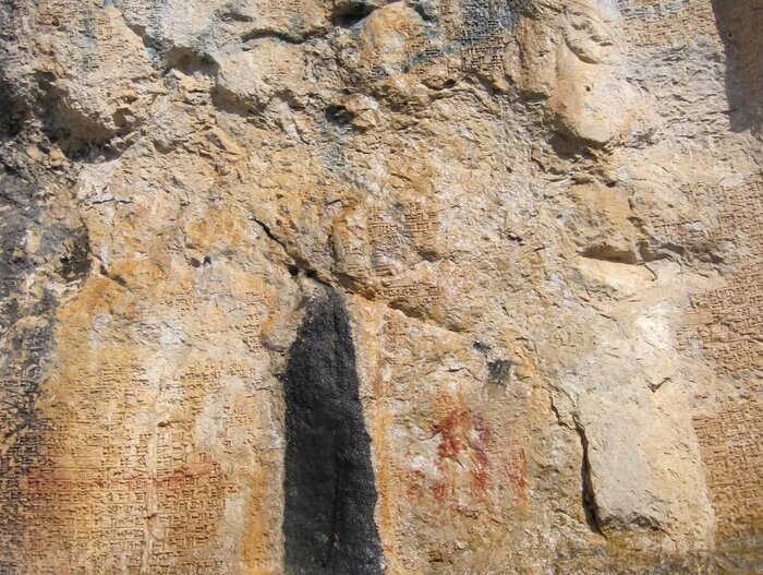 Но я нашла две схемы, они будут ниже. Там примерно показано, что там было. Сейчас, конечно, вообще можно пройти мимо этих уникальных барельефов, если не знать, что они там есть и что они такое. Издали клинопись выглядит просто работой ветра и других стихий.