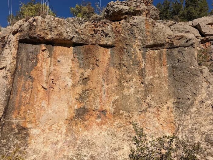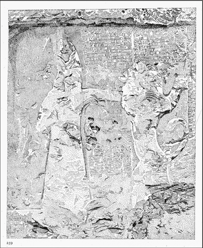 Скалы были перед нанесением надписей и барельефов обработаны специальным образом и выровнены вручную.