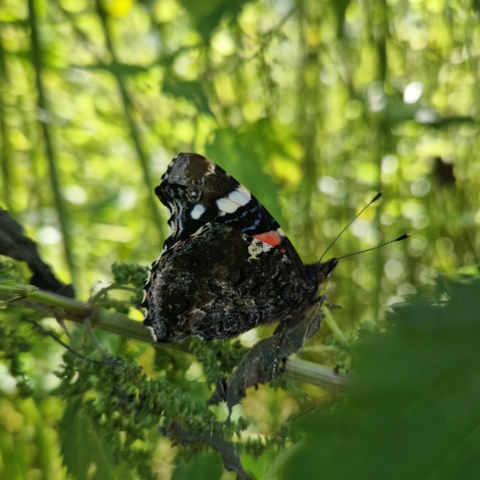 Каюсь, этого свежего адмирала Vanessa atalanta я побеспокоил, и в завершении своего первого непродолжительного полёта он показал яркий и контрастный верх своих крыльев.