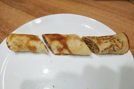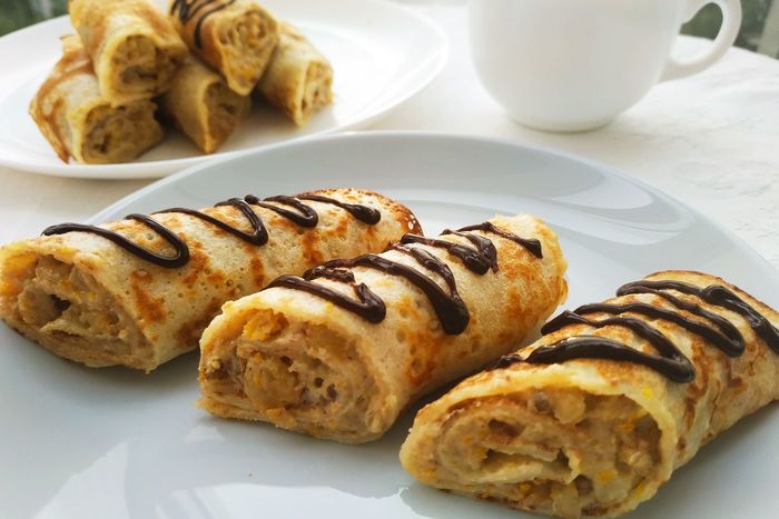 Выпекаем на очень хорошо разогретой сковородке. Если сковорода достаточно разогрета, то уже с первого блинчика все будет получатся идеально и "первый блин комом" вы избежите :).