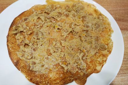 Блин мы обжариваем с одной стороны пару минут. Когда вы увидите, что поверхность стала сухой и появились дырочки,блинчик можно переворачивать. А вот со второй стороны мы обжариваем буквально несколько секунд и сразу снимаем.