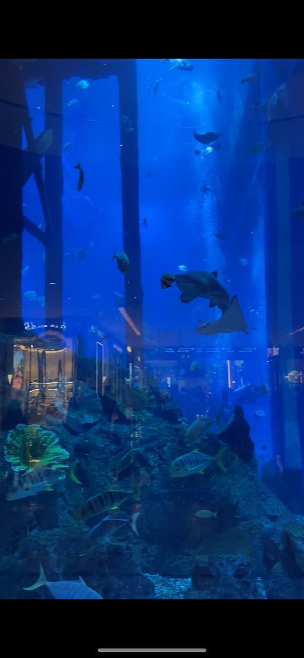 Прямо в Дубай-молле есть огромный аквариум с акулами, скатами и другими рыбами. Есть платный вход, но часть можно и так увидеть.
