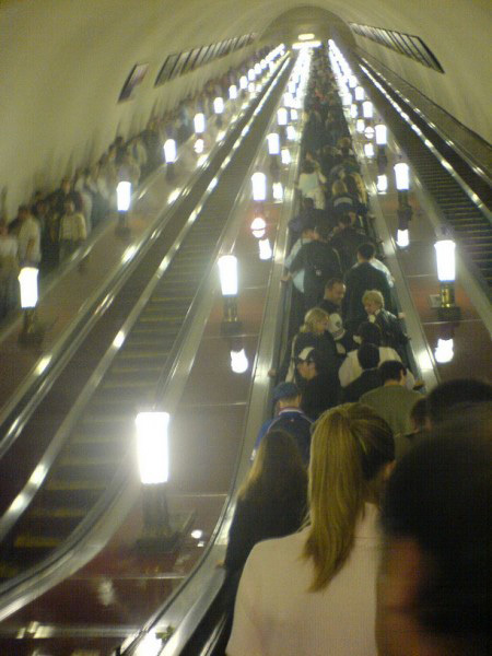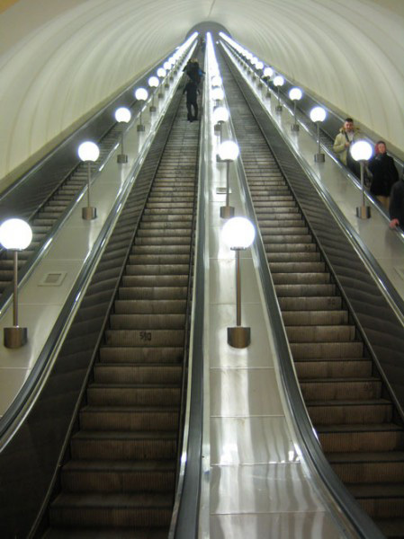Второе – эскалатор, по которому мы спускались вниз – был раз в 5-6 длиннее, чем в Новосибирске. Ехали до низа мы ровно две минуты.