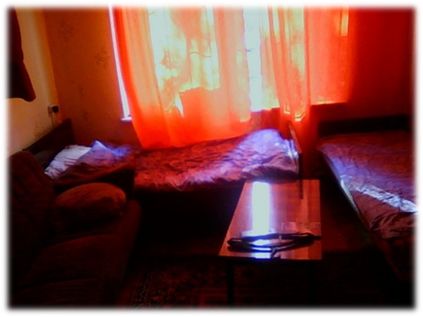 Вернемся к нашей теме – я заплатил денежку и заехал внутрь. В моей комнате был всего один сосед, и то он спал, когда я заехал. Комната была огромная, с кроватями возле стенок. Еще там был один стол, два стула и телевизор.