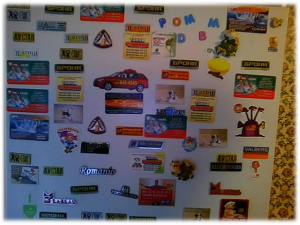 Еще одна забавная вещь – у нас был идеально белый холодильник, пока я не принес с поля (так мы называем нашу территорию, куда едем работать, тобишь — продавать) один магнитик, который влепил на холодильник. Через пару дней – я принес еще один магнитик, и тоже влепил его туда же, на холодильник.