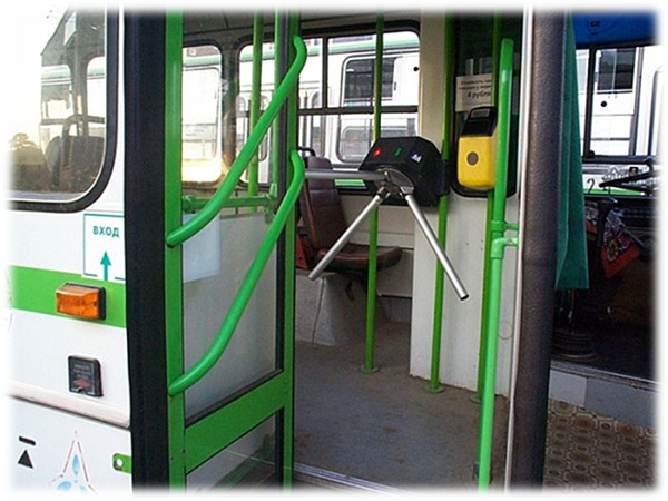 Тут я тоже удивился, потому что Московские автобусы на остановках открывают только переднюю дверь, и все заходят через нее. А там как раз стоит турникет, по которому проходить также нужно посредством карточек, таких же, как и в метро.