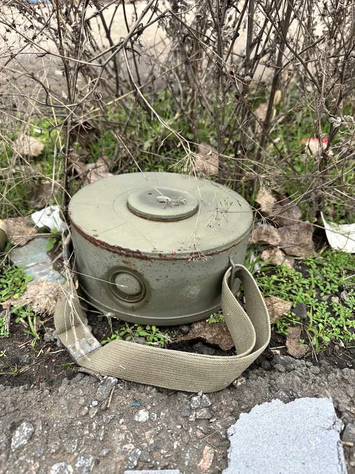 Использует два типа взрывателя: обычный, противогусечный или датчик - антенну (штырь), который срабатывает, когда техника касается его днищем. 4,5 кг взрывчатки. Общий вес около 8 кг. Нажим от 130 кг. Больше никому не навредит.