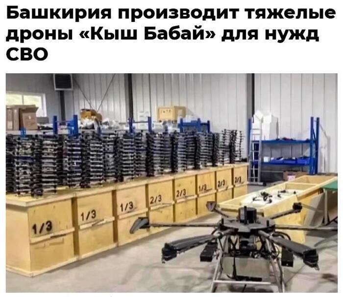 Мы ведем производство гражданских и военных дронов всех классов. Тяжелый дрон, который наши инженеры назвали "Кыш бабай" прошел летные испытания и сегодня уже помогает нашим бойцам. Мы уже отправляем их на передовую» ( источник: Послание Главы Республики Башкортостан Хабирова Р.Ф. Государственному Собранию Республики Башкортостан https://bash.news/news/259190-vse-dlia-pobedy-glavnye-tezisy...)