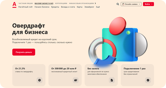 1. Альфа-Банк — выгодные условия для оформления займа для ИП