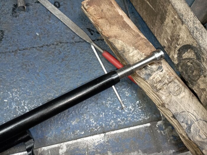 Для устранения перегаза пришлось купить специальный поршень для настройки автоматики, поймать правильное положение и приклепать его на затворную раму