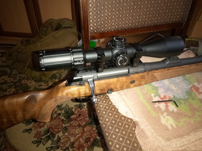 Первая итерация винтовки. Позже Тигр получил кронштейн для сошек "Лапка" и более светосильную оптику.