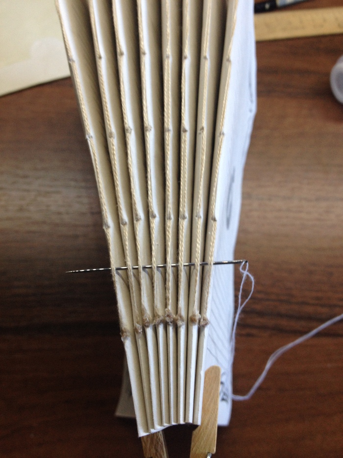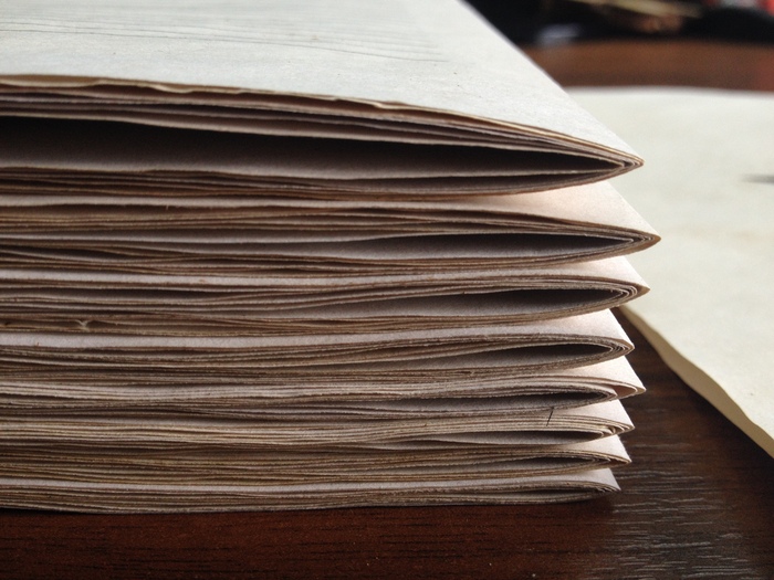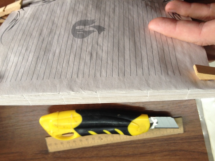 После чего надо подровнять края бумаги острым канцелярским ножом и сшить между собой полученные стопки.