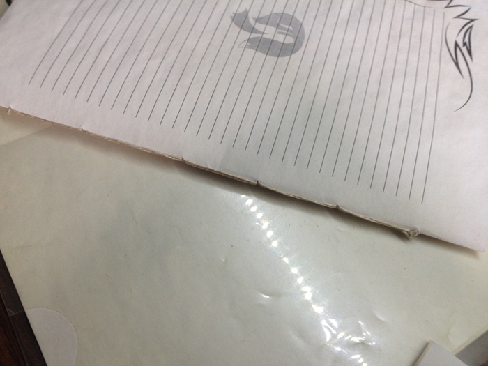 На корешок я наклеил кусок марли и бумаги, именно ими и будут прихватываться листы к обложке. Клей использовал "момент-гель", после высыхания он эластичный и прозрачный. Нет, не реклама)