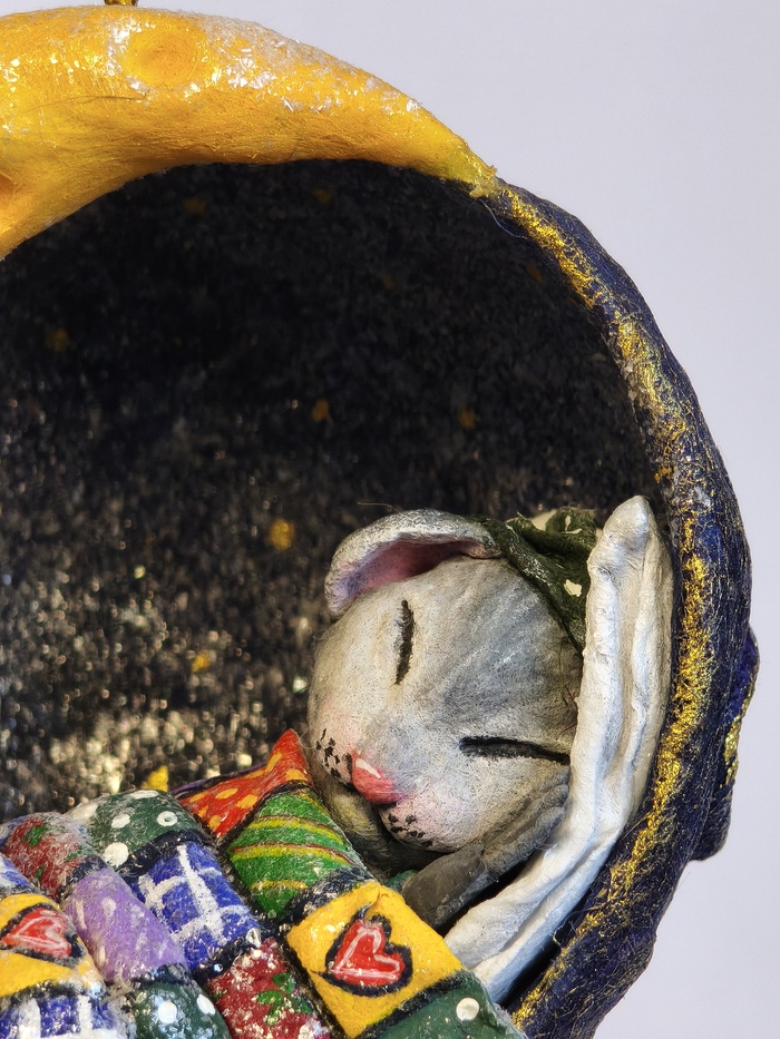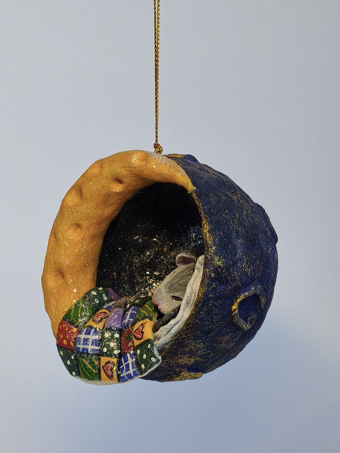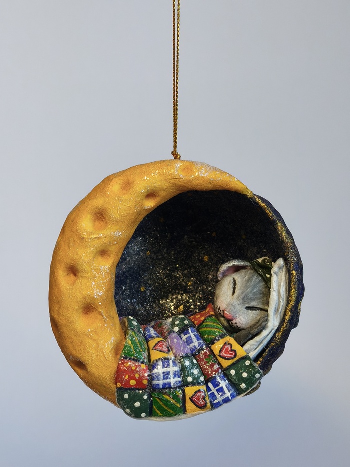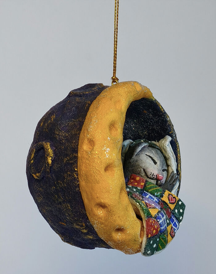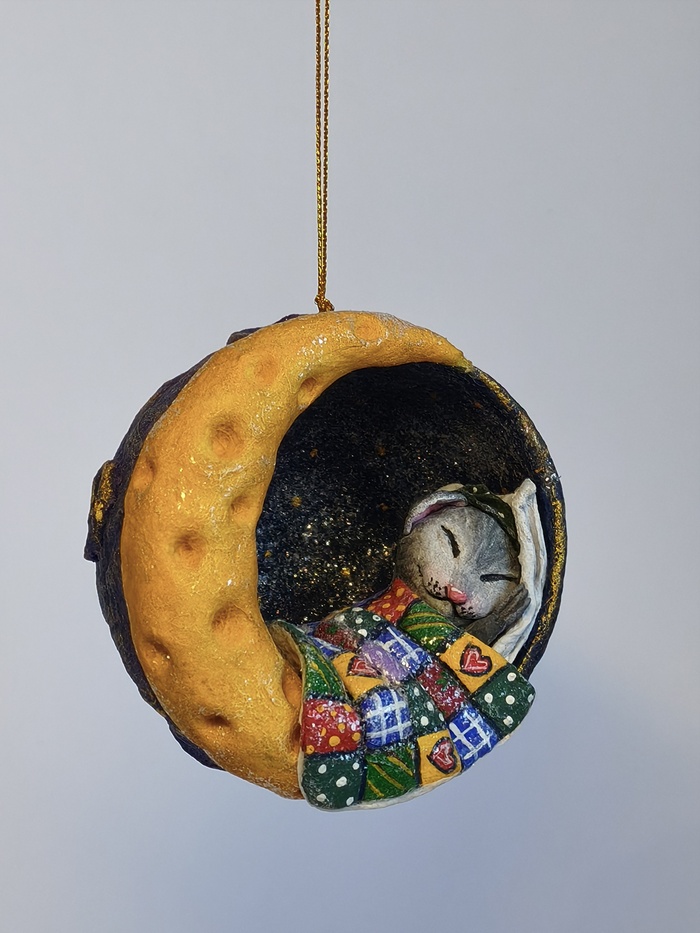 Все из ваты, полностью, 100%, роспись акриловыми красками. Сделан крепко, надежно, ничего не крошится и не отваливается.Диаметр шара 8см.