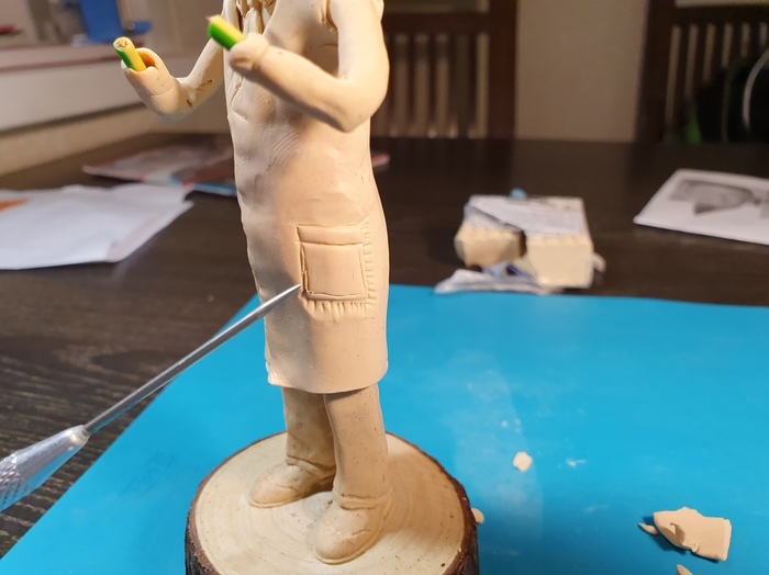 Наращиваю слои теста/глины выше по тельцу фигурки, что бы позже сформировать из них халат.
