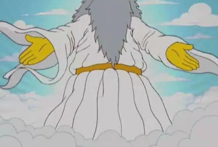 Это Бог. Да-да, не Гомер, не Барт и даже не Мистер Бёрнс, а именно Тот, кто появляется в редких эпизодах с небесным свечением и каноническими руками.