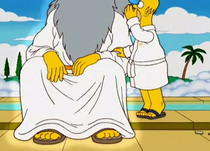 И тут начинается мета-уровень. В нескольких эпизодах «Симпсонов», где появляется Бог (например, когда Гомер встречает Его после смерти или в апокалиптических сюжетах), у Него пять пальцев.