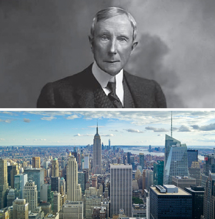 Рокфеллер был одним из первых, кто начал развивать нефтяную отрасль, которая тогда только зарождалась. Благодаря разным хитрым схемам, к 1880 году Джон контролировал 95% нефтедобычи. До этого момента он держал цены на нефть демократичными, но, получив полную монополию, сразу взметнул их в небеса. Даже антимонопольное законодательство ничего смогло сделать против Рокфеллера. Свою большую фирму он разбил на 34 маленькие компании, сохранив в каждой контрольный пакет. Современные Эксон Мобил, BP, Шеврон и прочие нефтяные гиганты являются дочками рокфеллеровской Стэндарт Оил. Ближе к старости Джон Рокфеллер переобулся в филантропа. Он много жертвовал церквям, детям, образованию. Эмпайер Стэйт Билдин построил тоже он.