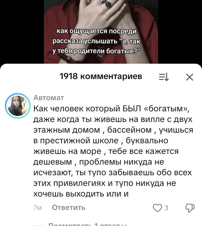Ж: -Потому что её имеют только богатые люди и они могут себе позволить её, а ты Нет!