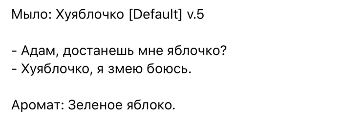 Одна из компаний выбросила на рынок новое мыло. Они очень креативно подошли к теме. На одном образце написано «Бабушка», на другом «Дедушка». Слоган компании - «Каждому свое».
