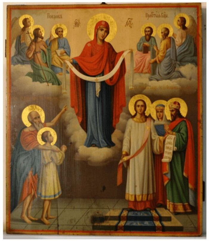 Эта икона была придумана и нарисована в 19 веке в Российской империи.Рисунок представляет собой поле со сжатыми снопами хлебных злаков.