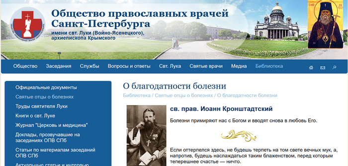 На сайте "Общества православных врачей Санкт-Петербурга..." опубликованы поучения святых Русской Православной Церкви