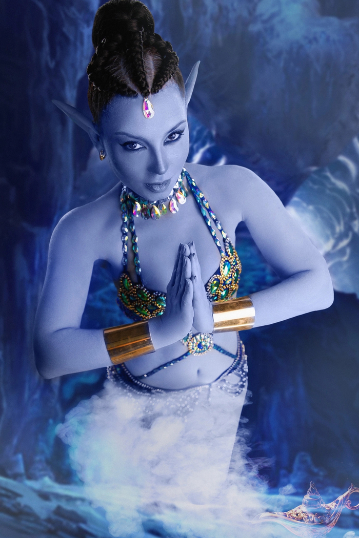 Привет. Процесс создания образа и нанесения грима (тело окрашено голубой краской) я описывала в предыдущем посте Джин и Волшебная Лампа. Процесс создания косплея