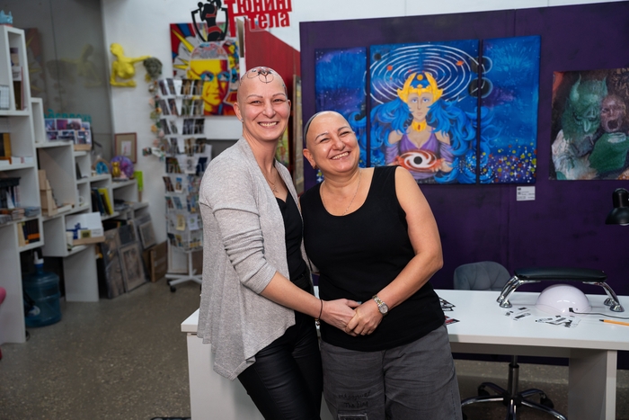 Вчера в галерее АртХаб несколько девушек из подобного проекта "Уникальный люди" стали участницами бодиарт перфоманса "На лысых головах". Если говорить человеческим языком, то их головы стали холстами для кистей и красок Анны Поповой