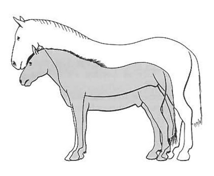 Рост дестриера в сравнении с рабочей лошадью. Источник: The Medieval Horse and its Equipment. 1150–1450 / Ed. by J. Clark. — Woodbridge, 2011