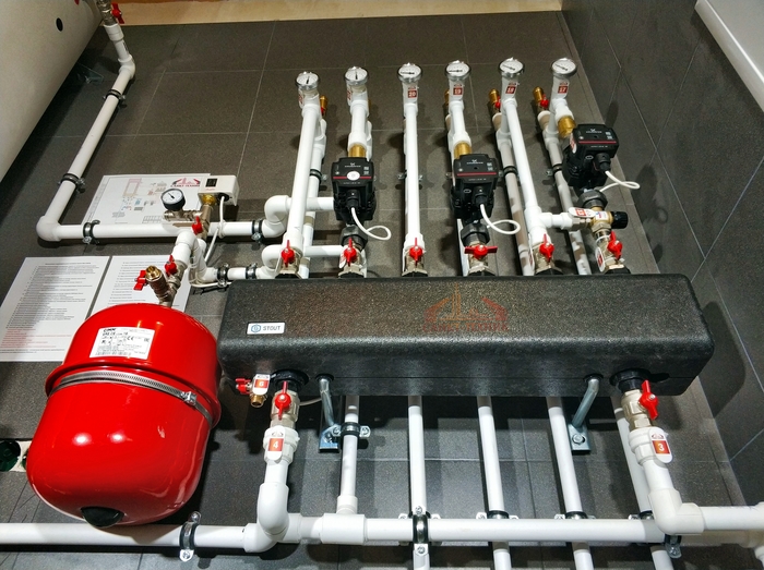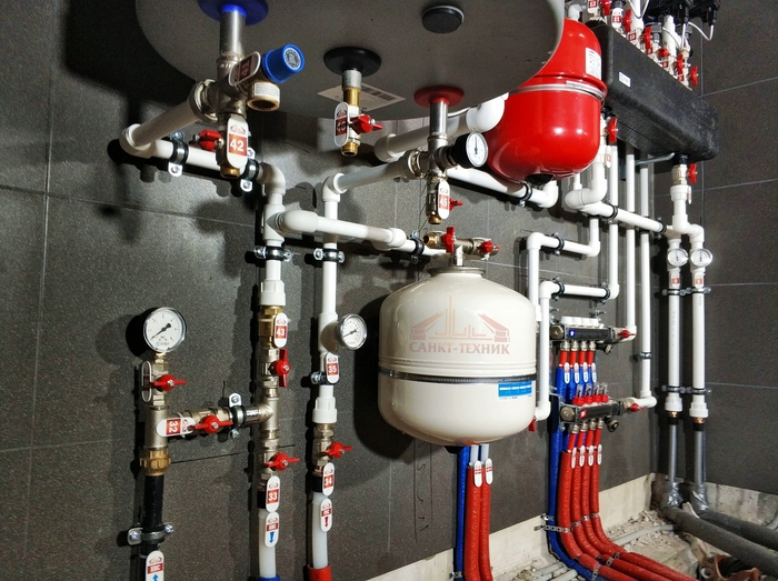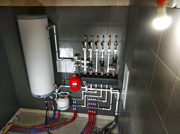 Здесь было не совсем так, но тоже надо доделывать водоснабжение и радиаторы в бане, и установить автоматику на теплые полы в основном доме.