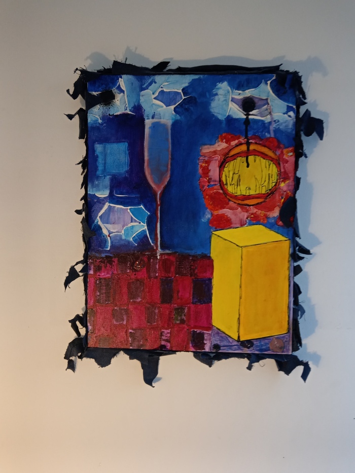 Моя картина изображает подоконник с шампанским, бокалами и фруктами. На фоне стоят цветы, которые создают атмосферу романтики и нежности. Я долго работал над деталями, стараясь передать каждую мелочь.