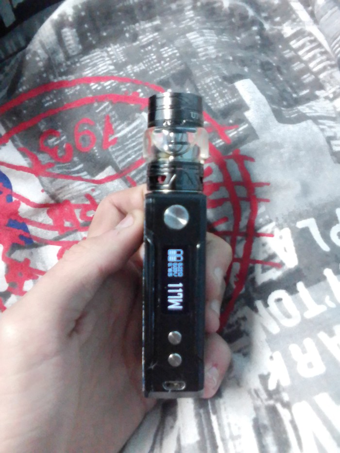 Фото из личного архива. На пико установлен клон цунами, голова снята и поставлена на крышку аккумуляторного отсека. Намотан немного косячный Demon Killer Coil.