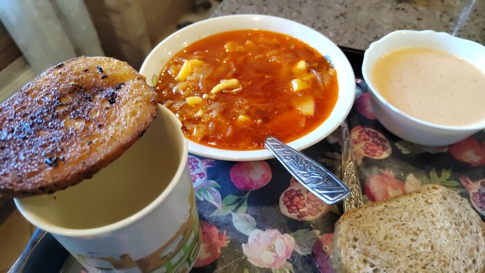 Ну и дальше обед-обязательно первое-вкусное, наваристое, с мясом, приправы и зелень!!!! Да, я кормлю их вкусно и сытно-это мое решение и мой выбор! Мы дома и должно быть комфортно во всем!