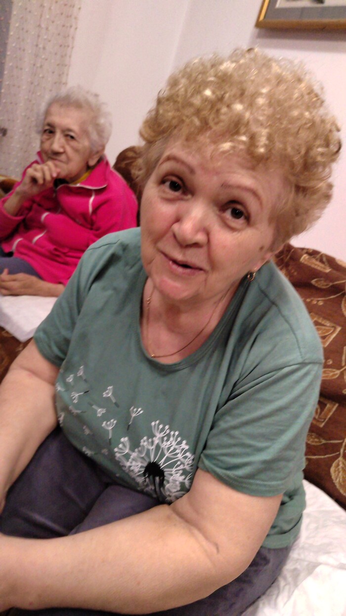 Приезжает Тоня, волосы каре , ужас, лицо закрыто. Маленький, очень маленький рост и ооочень полная. Зашла, ну вплыл крейсер под названием -Барыня:) познакомились, привезли врачебные выписки, сумки и ребята очень быстро убежали, чтоб бабушка не успела при них отжечь:) Начались дни притирки-это ем, это нет. Прогулки?-не царское это дело, мне бы лечь. Чем то развлечься-нет, мне бы лечь. В душ???? Да Вы, что, я и так чистая!!! Переодеть, помыть, погулять, заинтересовать чем то, ну просто катастрофа, ничего не хочу, мне бы поесть и лечь!!! Но, не тут то было, тут к ней ежедневно пристает какая то тетка с помыться утром и вечером, переодеваться в чистое, , по режиму кушать, гулять и на, что то отвлекаться:) Конечно же было ну архи с ней сложно, так, как там с адекватностью все плохо, а я так полагаю, что очень давно, к тому же очень деспотичная, ни приемлюющая ничьего авторитета, от слова совсем! Это знаете, как, из серии Я УСЕ ЗНАЮ! Работы ежедневно с ней было очень много и по итогу она сдалась, так, как воевать смысла нет, от нее все равно не отстанут) И вот наша Тоня из гадкого и скандального утенка-превратилась через месяцев наверное семь, в обычную бабулю. Чистая, опрятная, гуляющая, по мере возможности занимается чтением сказок, любит мозаику и пластилин. Гуляет под ручку с соседкой по немногу, дремлет на лавочке, вспоминают песни молодости, ну и, конечно же костерит с подругами окружающих, правительство и вообще раньше все было не так! Ура, очередная победа!!!!!