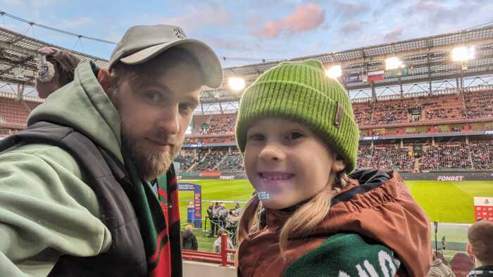 Смотря футбол по телевизору, вдруг задумался "А почему, собственно, я ещё не сводил ребенка на стадион?" Дочка хоть и не особо футболом увлекалась, но сама по себе поездка на матч это что-то новое для неё. Естественно, пришлось оформить фан уйди айди.