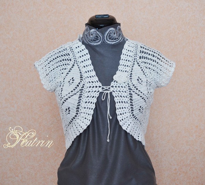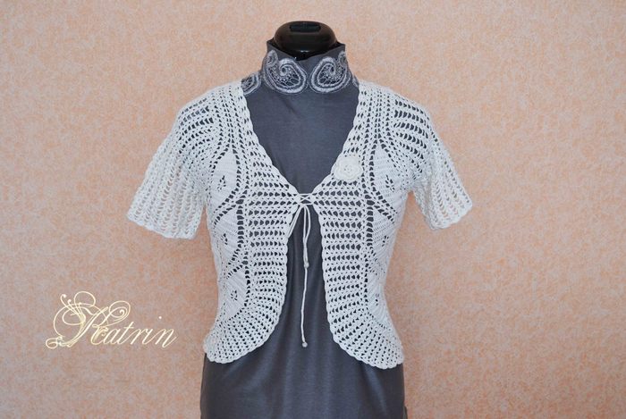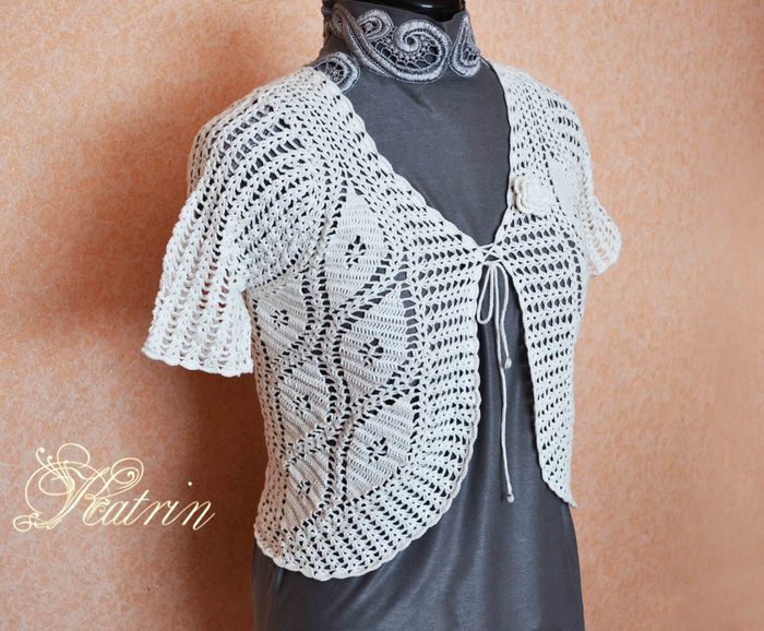 Нравится вязать крючком. Изделия получаются ажурные, можно виртуозить практически без границ. Нашла интересный рисунок кофточки и захотелось её повторить. Работалось легко, получилось нежно и мило. Связала белое болеро.