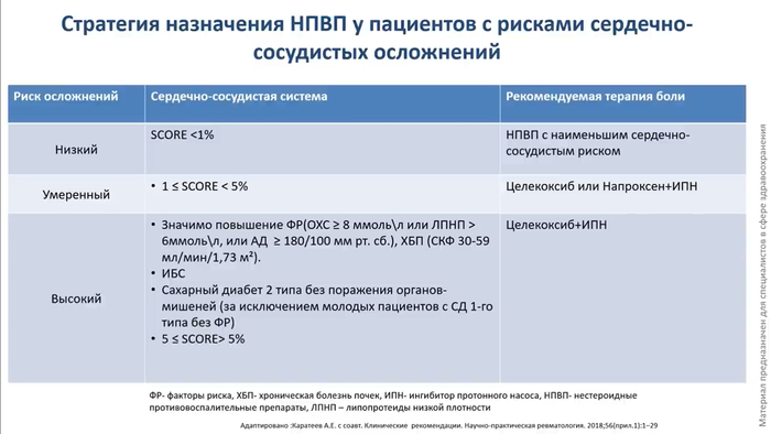 Ну и вот такие инфографические памятки для врача по алгоритмам ведения и примененеия НПВП с учетом разных рисков: