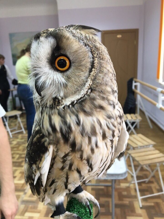 Нет, она не с питомника, в младенчестве это был почти труп со стандартной историей "выращу и выпущу", но что-то пошло не так и уже буквально на пороге смерти птицу передали в Новосибирский ЦР. В то время мы ещё ничего не знали о правильном воспитании диких совят, а когда узнали - время уже было упущено. Сова не ассоциирует себя с птицами даже своего вида.