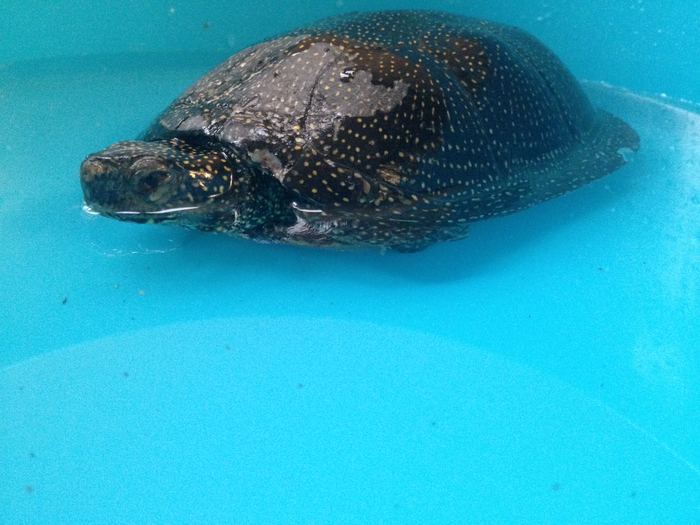 Как узнать болотную черепаху? Часто в наши водоёмы попадают инвазивные виды черепах. В первую очередь — красноухая черепаха, которая в природе живёт в Северной Америке. У болотной черепахи нет красных полос за глазами или хоботка как у триониксов. Она тёмно-зеленого цвета в мелкую жёлтую крапинку.