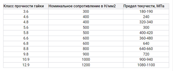 Пример: гайка с пределом прочности 6 должна идти в комплекте с болтом, имеющим предел прочности 6 х 100 = 600 Мпа.